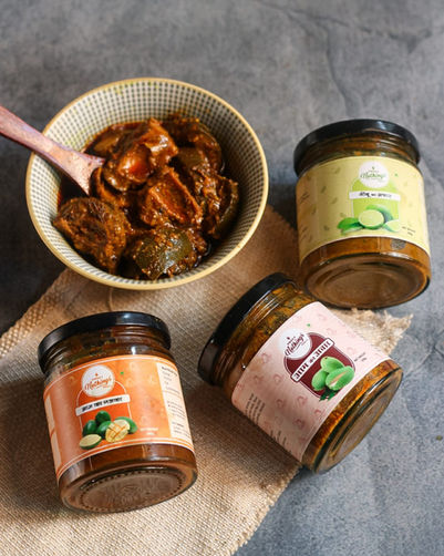 Achars or Indian pickles are not just condiments, they are love and care packed in a jar. Made from only the best quality green mangoes- handpicked and organic. We follow much-loved recipes that goes through a long process of transformation to make your taste buds dance. Surprise in a jar